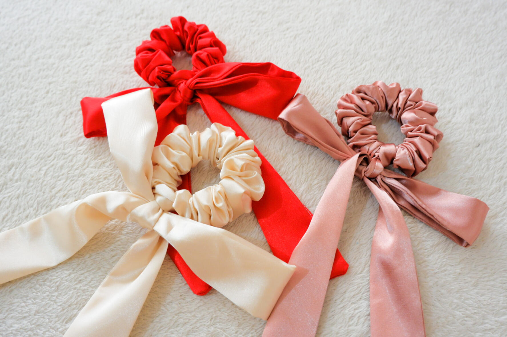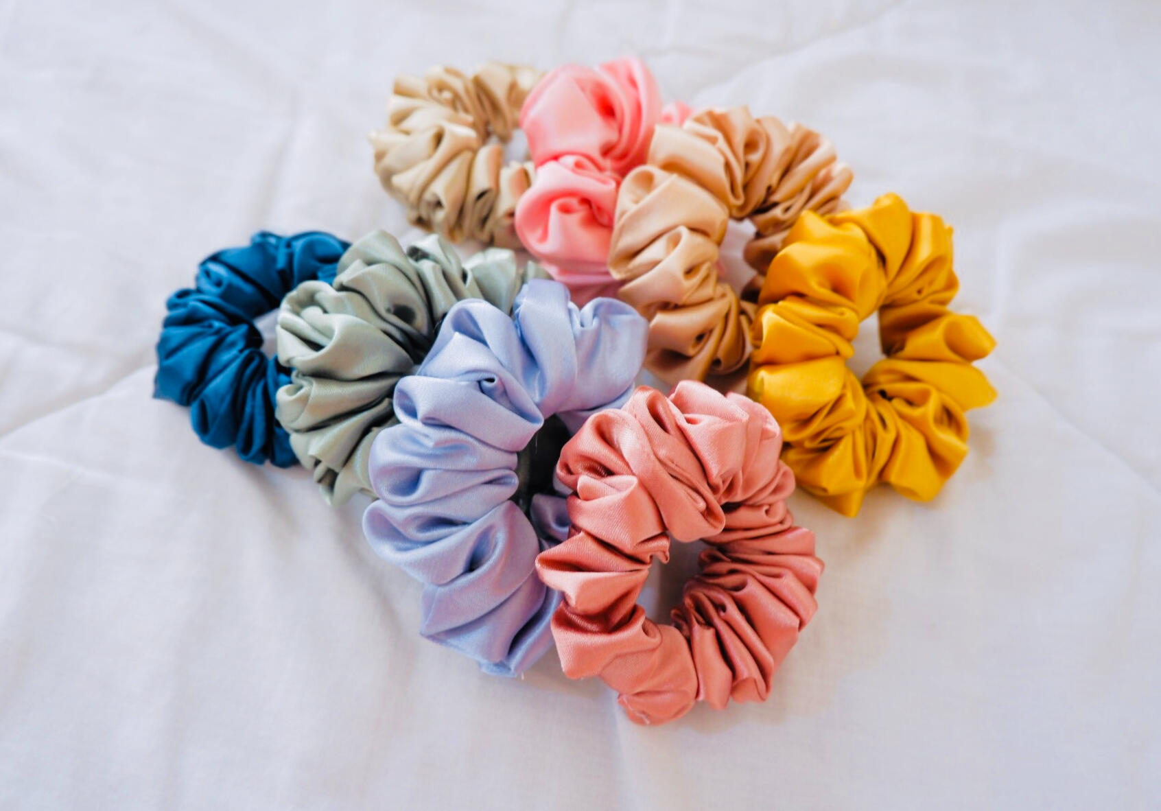 Our silk scrunchies are sustainably handmade using premium silk — the kind your hair (and the planet) will thank you for. Each piece is crafted with care, not mass-produced, giving you a truly luxurious and conscious way to style.